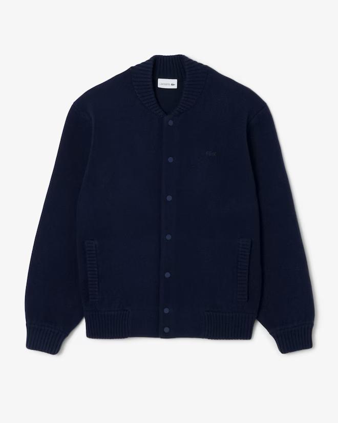 Una rivisitazione creativa e all’avanguardia del bomber Lacoste, esperti di eleganza francese dal 1933. Realizzato in morbida, spessa e confortevole lana merinos, dona un guizzo unico al classico taglio bomber. Un capo sofisticato con dettagli a coste e un tradizionale coccodrillo ricamato.