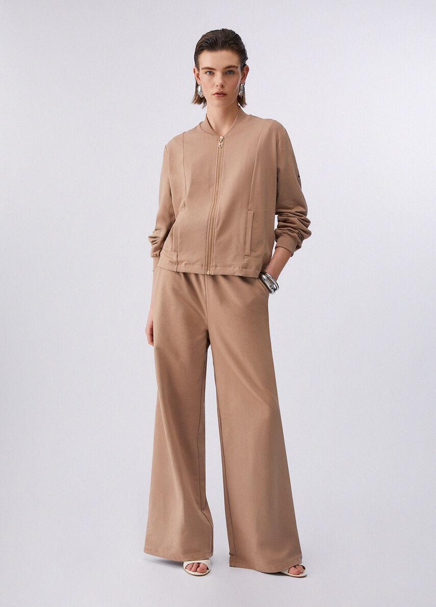 Un set coordinato per i tuoi look off-duty. Linee pulite, una gamba flare che slancia e filati in