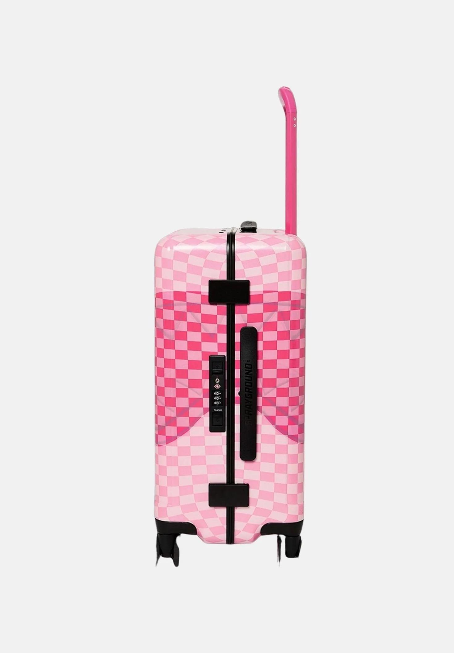 PRAYGROUND Trolley Pink Sip Patch Carry-On Luggage rosa da donna. Il trolley Sprayground Pink Sip Patch Carry-On Luggage unisce funzionalità e stile streetwear in un bagaglio compatto ideale per viaggi brevi e spostamenti in aereo. Il design è caratterizzato dalla grafica Pink Sip Patch, con dettagli e applicazioni decorative che donano al trolley un look moderno e distintivo. Realizzato con scocca rigida resistente, questo trolley protegge efficacemente il contenuto durante gli spostamenti. L’interno spazioso è progettato per offrire un’organizzazione ottimale grazie a scomparti dedicati e cinghie elastiche, perfetti per mantenere abiti e accessori in ordine. Le quattro ruote multidirezionali assicurano scorrevolezza e maneggevolezza, mentre la maniglia telescopica regolabile consente di trasportare il trolley con il massimo comfort. Grazie al formato compatto, è perfetto come bagaglio a mano per la maggior parte delle compagnie aeree. Il Pink Sip Patch Carry-On Luggage è la scelta ideale per chi desidera viaggiare con un accessorio pratico e allo stesso tempo caratterizzato dall’inconfondibile stile creativo Sprayground. Dimensioni: 35 cm x 54 cm x 22 cm. Stagione primavera estate.